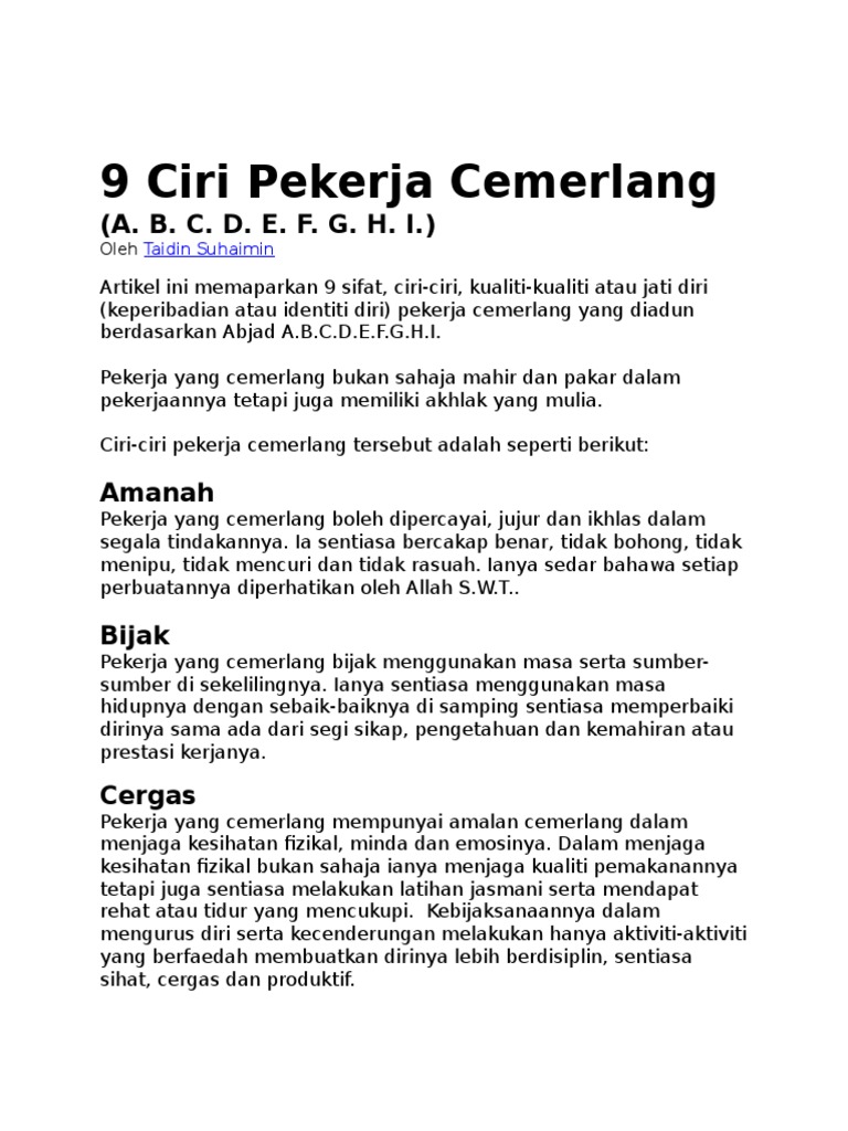 Ciri Ciri Pekerja Cemerlang / Menjadi seorang murid yang berkualiti adalah impian setiap pelajar.. Segera setelah anda telah hamil, mungkin mulai ada perasaan sering muntah. Tidak pun, cuba berlakon sebagai pekerja. Beberapa diantara mereka tumbuh menjadi manusia dengan kemampuan sosialisasi yang baik dan terbuka terhadap banyak hal. Download / print puzzle puzzle settings. Hal ini kerana pelajar yang berkualiti akan menjadi kebanggaan ibu bapa, guru dan pihak sekolah.