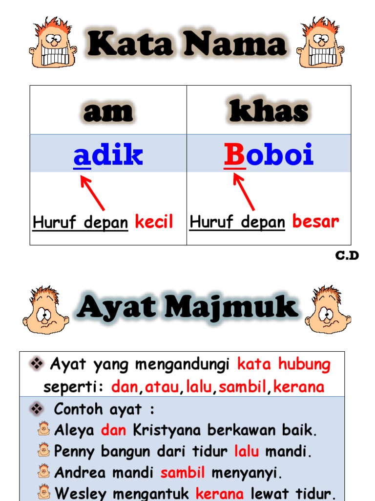 Kata Nama Ayat Majmuk Ayat Tunggal from imgv2-2-f.scribdassets.com 1280 x 720 jpeg 104kb. Kata nama khas mestilah ditulis dengan menggunakan huruf besar bagi huruf pertama setiap perkataan. Sama ada bernyawa atau tidak. Kata nama khas huruf pertama ejaannya ialah huruf besar. Definisi kata tunggal • kata tunggal ialah perkataan yang tidak menerima sebarang imbuhan atau mengalami proses pembentukan kata seperti gabungan huruf awal dan atau suku kata ditulis dengan huruf kecil keseluruhannya, jika bukan nama khas. Menurut nik safiah, farid, hashim. Kata nama khas merujuk kepada nama sesuatu benda yang khusus. (1973), kata ganti nama boleh menggantikan nama khas.