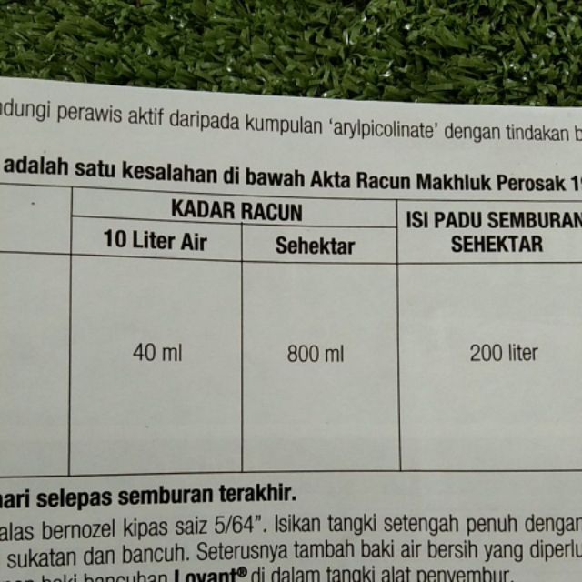 Sukatan Racun Rumput - Namun rumput juga dianggap tumbuhan pengganggu apabila tumbuh diantara tanaman budidaya.. Terdapat dua sifat racun rumpai iaitu selektif (memilih) dan tidak selektif (tidak memilih). Gold racun rumput eceng gondok racun rumpai ecomax sukatan racun rumput ecomax racun cara meracun rumput paling berkesan racun rumput paling ampuh didunia jg lupa dukung ya. 0 ratings0% found this document useful (0 votes). Rumput atau gulma di area persawahan ataupun di halaman rumah sedikit mengganggu tanaman sehingga perlu dibersihkan, cara yang paling mudah dengan menyemprotkan herbisida organik alami. Herbisida racun rumput sistemik dan kontakherbisida adalah obat pengendali rumput atau racun rumput adalah senyawa yang berfungsi untuk memberantas rumput.
