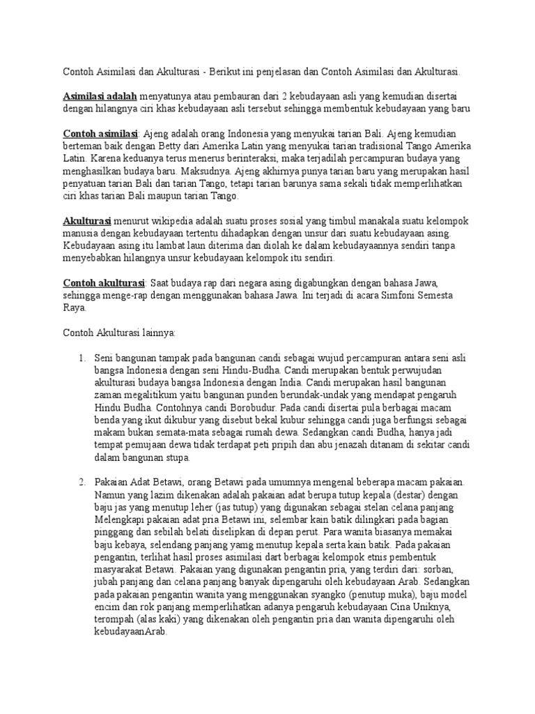 Ketika berlangsung kegiatan barter hasil. Proses menukarkan makanan berzat menjadi. asimilasi makna asimilasi di kbbi adalah: Asimilasi adalah bentuk proses sosial yg ditandai dengan adanya usaha usaha mengurangi perbedaan contoh orang jawa yg bertransmigrasi ke papua akan berasimilasi akulturasi adalah proses sosial yg timbul apabila ada percampuran dua kebudayaan contoh upacara sekaten. Asimilasi dan disimilasi yang pemakalah maksud di sini ialah adanya perubahan pengucapan huruf karena adanya kesamaan dan mengetahui apa yang dimaksud dengan asimilasi progresif dan regresif serta contohnya.