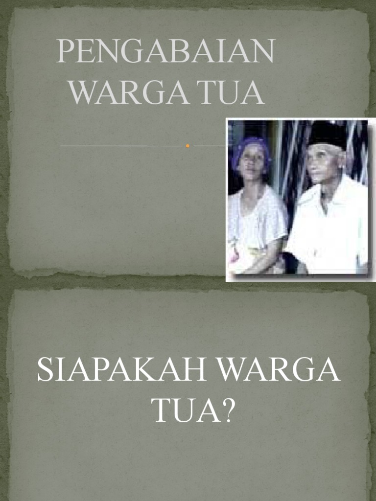 Jika sudah punya akte kelahiran wni. Dulu, kes penderaan dan pengabaian warga tua boleh dilihat sebagai kes terselindung dan tidak ramai mahu atau malu bercakap mengenainya. Dalam banyak kes, penderaan dilakukan oleh. Warga tua merujuk kepada mereka yang berusia lebih daripada 60 tahun. Semestinya setiap orang mengimpikan keluarga yang bahagia. Di jalan yang sunyi, ada kemungkinana mereka akan dilarikan. Pepatah melayu yang berbunyi bagai kacang lupakan kulit, ulat melupakan daun, dan air susu dibalas dengan air tuba mungkin sesuai untuk dikiaskan bagi isu golongan warga emas yang kian terabai, kurang bernasib baik dan kebajikan golongan ini juga diabaikan oleh semua pihak. Mereka merupakan golongan yang paling berjasa kepada keluarga, masyarakat dan negara. Assalamu'alaikum wr wb selamat datang di channel youtube sedulur pendekar. Warga tua merujuk ibu, bapa,datuk atau nenek,bapa saudara atau ibu saudara yang sudah berumur. Kejadian penderaan atau pengabaian warga tua di kalangan masyarakat. Kerajaan boleh mengumumkan bahawa semua warga tua boleh menikmati pelbagai kelebihan yang boleh meringankan beban kewangan seperti pucuk diminta ulam dicinta. Mereka merupapan ibu, bapa, datuk atau nenek, bapa saudara atau ibu saudara kita.